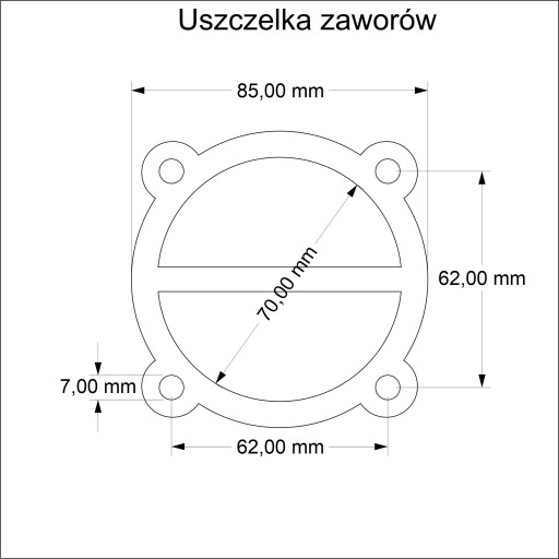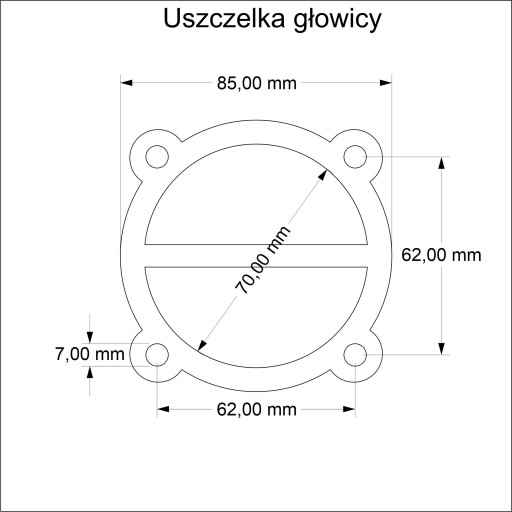 Zestaw pasuje do większości sprężarek chińskiej produkcji z tłokami o średnicy 65mm i czterema śrubami w głowicy. Poniżej szczegółowe rysunki i opis uszczelek.