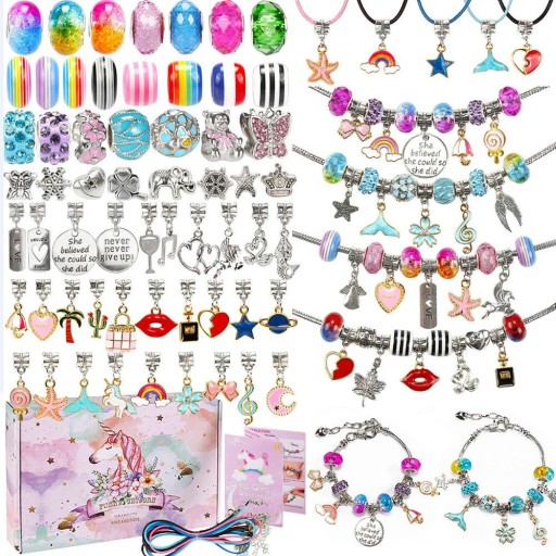 Zestaw do robienia bransoletek zawiera kolorowe koraliki, śliczne zawieszki, urocze kosmiczne koraliki, odpinane bransoletki i śliczne sznurki do naszyjników z zapięciami. Zestaw all-in-one, aby cieszyć się tworzeniem bransoletek, naszyjników, kostek i rzemiosła jubilerskiego.