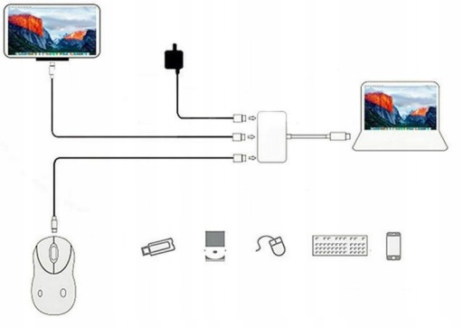 Adapter Przejściówka HUB 3w1 MHL HUB USB C HDMI 4K do MacBook Samsung