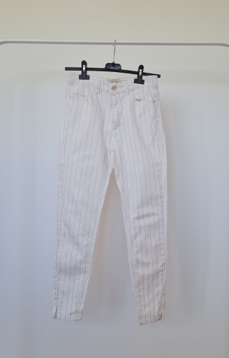 Jeansy w kolorze białym. Wzór w cienkie pionowe paski.