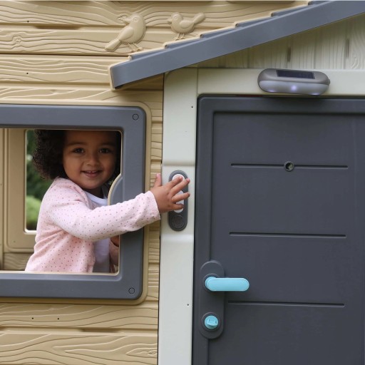 Elektroniczny Dzwonek Doorbell firmy Smoby to zabawka, która pasuje do wszystkich nowoczesnych domków ogrodowych tej marki: Jolie, Lovely, Nature, Pretty, Neo Jura Lodge, Friends House, Friends House Evo, 4 Seasons Playhouse, Sweety Corner Playhouse, Garden House Playhouse, Chef House Playhouse, Dom na Palach. Jest łatwy w montażu i pozwala dzieciom spersonalizować swój domek, pisząc na nim swoje imię. Dzięki dzwonkowi dzieci mogą zapraszać gości do swojego domu, słysząc realistyczny dźwięk dzwonka. Dzwonek ma szary kolor i mały głośnik. Potrzebuje 2 baterii AAA/LR03 (nie dołączonych do zestawu).
