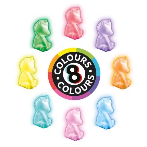 Głośnik Unicorn, to cudowny element każdego dziewczęcego pokoju - zapewnia piękną atmosferę, pozwalając wybrać kolor, którym chcesz oświetlić swój pokój lub po prostu użyć go jako lampki nocnej!