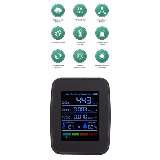 - 1 x Detektor jakości powietrza (dostarczany z wbudowaną baterią) 1 x instrukcja obsługi
