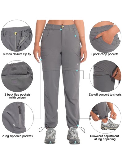 - 6 KIESZONK Te damskie spodnie turystyczne są wyposażone w wiele kieszeni, 2 wsuwane kieszenie, 2 zapinane na zamek kieszenie na udach i 2 tylne kieszenie, dzięki którym Twoje rzeczy będą bezpieczne podczas ruchu.