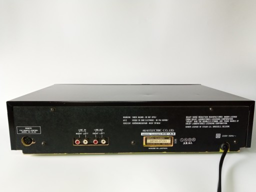 Używany, w pełni sprawny magnetofon, deck AKAI HX-A3. Bez problemu odtwarza, nagrywa i przewija.. Wizualnie, jak na wiek, w dobrym stanie. Oczywiście ma trochę rysek, przytarć, przybrudzeń, niewielkich wgnieceń górnej części obudowy itp. Przedni panel ładny.
