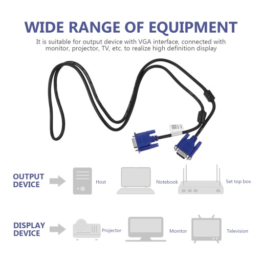 ✅Ten kabel VGA ma długość 1,5 metra i nadaje się do ogólnego użytku.