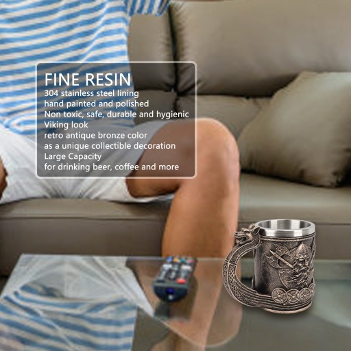 2. Vintage Design: ten kubek Viking ma wygląd Viking z retro antycznym brązem, który może być używany nie tylko jako kubek do picia, ale także jako wyjątkowa dekoracja kolekcjonerska.