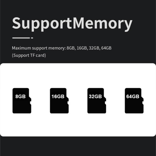 Nagrywanie w pętli: obsługa karty TF o pojemności od 8 do 64 GB (brak w zestawie), gdy karta jest pełna, najstarsze pliki zostaną usunięte, aby automatycznie zrobić miejsce na nowe pliki w razie potrzeby.
