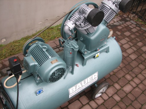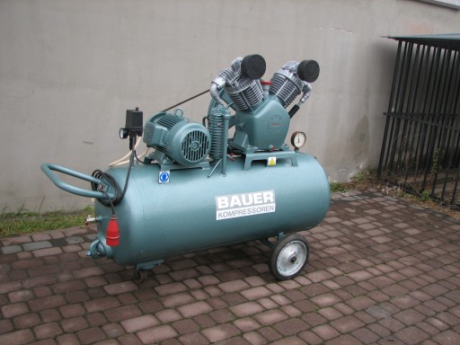 Sprężarka bauer na 250 litrowym zbiorniku moc napędu 4 kw wydajność 700 litrów na minutę ciśnienie 10 bar . Ze względu na wagę około 250 kg wysyłka tylko na palecie kontak 502 609 393