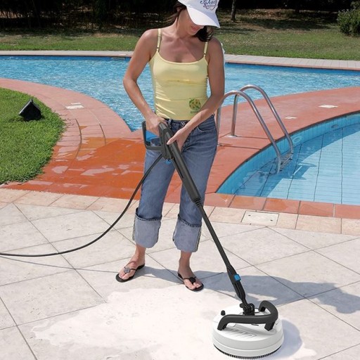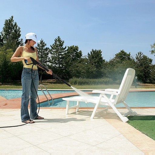 - Zawartość zestawu: pistolet natryskowy, lanca przedłużająca, dysza vario i obrotowa, zbiornik na detergent 1,4 l, wąż wysokociśnieniowy 9 m wzmacniany stalą, filtr, szczotka obrotowa, myjka chemiczna do patio