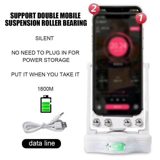 Product use: cell phone put on the frame, plug the line or with a storage version, push a start has been swinging.