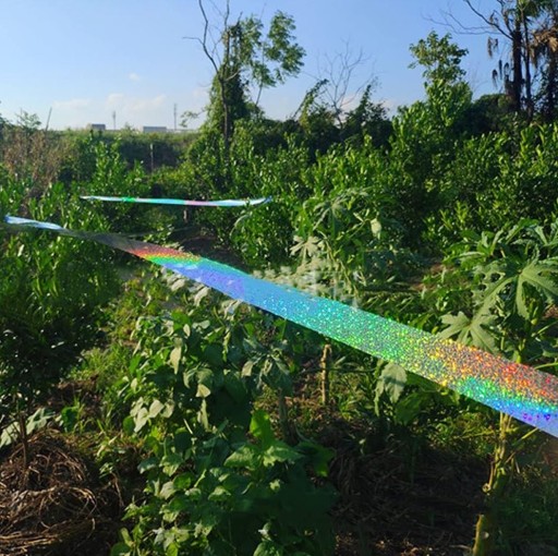 - Powieś taśmę luźno, aby opadała i powiewała na wietrze, tworząc refleksy świetlne, które odstraszają ptaki.