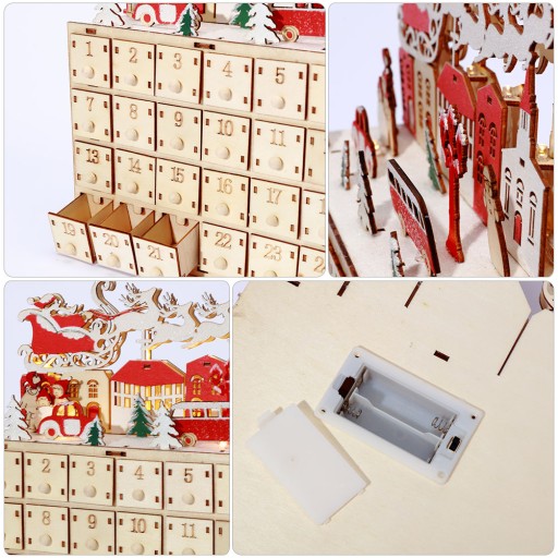 ✅Świąteczny kalendarz adwentowy wykonany z trwałego i stabilnego materiału drzewnego, który jest bezpieczny i trwały w użytkowaniu.