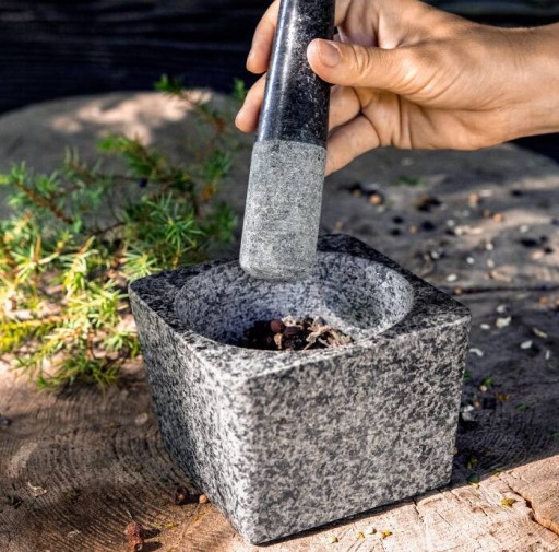 Znakomicie ułatwia przyrządzanie tradycyjnego pesto, służy do rozgniatania przypraw, ziół, mieszanek smakowych itp.