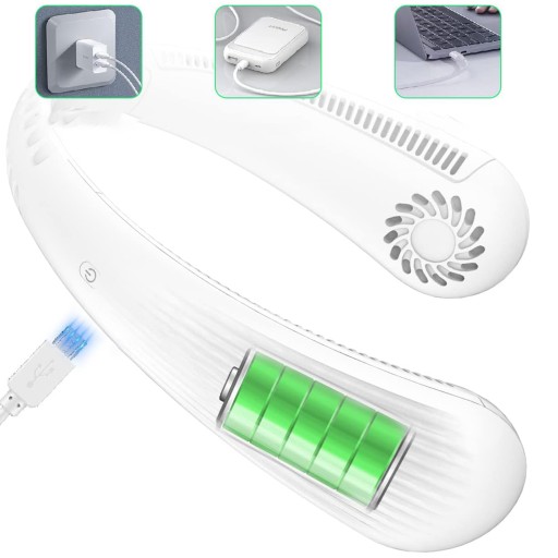 - Przenośny wentylator ma kształt litery U i można go używać po prostu zawieszając go na szyi.