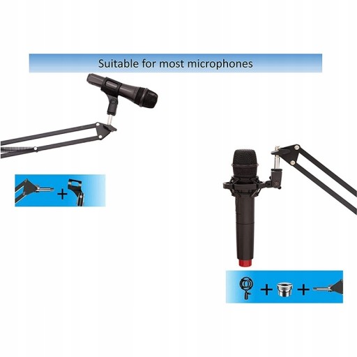 Stojak na mikrofon biurkowy, stojak na mikrofon na niebieski Yeti i niebieski Yeti Pro z mikrofonem szyba przednia i Blowout zapobiegają stojak z ramieniem Profesjonalny regulowany mikrofon stojak: profesjonalne Studio nagrań sprzęt z regulowany mikrofon stojak, regulowany Shock góra, dwuwarstwowy filtr, adapter śrubowy, mocowanie antywstrząsowe mikrofonu, stół zacisk montażowy z gąbka uszczelniająca, ramię wysięgnika, mic arm.Obrotowy kąt i zacisk montażowy stołu: metalowy wspornik można dostosować do odpowiedniego kąta i wysokości, aby pokazać doskonały dźwięk. Poduszka z gąbki tabeli rama montażowa może naprawić jego maksymalna grubość do 2.4 cal, w ten sposób w pełni chroniąc stół przed uszkodzeniem.Filtry dwuekranowe: pierwszy ekran blokuje blasty powietrza, tak jak każdy filtr normalnie; Przestrzeń pomiędzy nimi rozprasza wszelkie pozostałe ciśnienie powietrza, więc do czasu przejścia drugiego ekranu, wybuch jest łatwo zawarty. Wyrzuć przerażające syczące i śpiewające dźwięki, które pojawiają się podczas wymawiania litery "S" i blokuje te brzydkie "plotery", które podążają za "B" i "P".Silna kompatybilność i zastosowanie: nasze mic arm może kompatybilny z Blue Yeti, Snowball lub zamontować większość standardowych mikrofonów. 3/8 cal do 5/8 cal adapter śrubowy są linii z normami branżowymi. Regulowany uchwyt amortyzujący i uniwersalny klips mikrofonowy zapewniają również więcej możliwości. Maksymalna waga nośna to 70 uncji/2 kg (4.4 funta).Doskonały efekt montażu amortyzującego: średnicę klipsa mikrofonowego można zmienić, regulując o-ringi na mocowaniu amortyzującym, doskonały garnitur dla mikrofonów O średnicy większej niż 1.9 cala. Profesjonalne zawieszenie shock mount izoluje większość studyjny kondensator mikrofonów od fizycznych wibracji, podłogi i hałasu stoiska. Zabierz swoje nagranie i Streaming do następnego poziomu.Materiał: metalKolor: czarnyZawartość opakowania:1 x wspornik wspornika1 x biurko klip1 x mikrofon na klips1 x Blowout preventer1 x metalowy adapter1 x shock góra3 x trytytkaTylko powyższa zawartość opakowania, inne produkty nie są uwzględnione.Uwaga: fotografowanie światłem i różne wyświetlacze mogą spowodować, że kolor przedmiotu na zdjęciu będzie trochę inny niż rzeczywisty. Błąd pomiaru wynosi /- 1-3cm.
