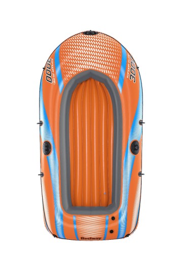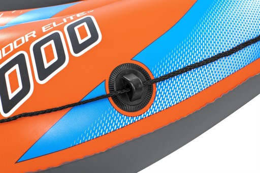 ✅ Wykonany z trwałego i wytrzymałego PVC, posiada trzy niezależne komory powietrzne. Ponadto wokół kajaku umocowana jest linka asekuracyjna.