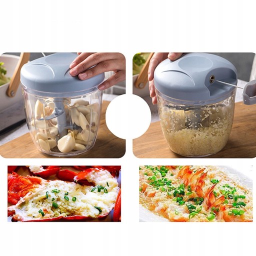 - Jedną ręką przytrzymaj pojemnik za pokrywę, a drugą kilkukrotnie pociągnij za uchwyt do krojenia. Powtarzaj czynność do momentu uzyskania pożądanego efektu.