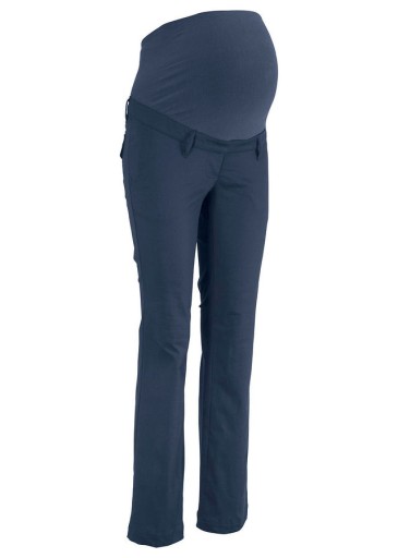 Spodnie ciążowe z elastycznym paskiem na brzuch, dzięki czemu doskonale dopasowują się do rosnącego brzucha.. Z przodu i z tyłu praktyczne kieszenie.