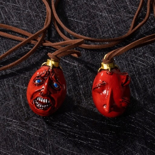 Behelit jest dostarczany z brązowym skórzanym sznurkiem. Dla fana mangi Berserk.