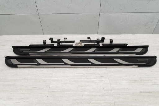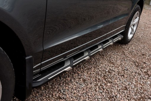 Stopnie boczne dedykowane do modelu AUDI Q5 (8R) 2008-2017. Produkt wykonany z wysokiej jakości aluminium oraz tworzywa motoryzacyjnego ABS. Model ten ozdobiony został listwami z polerowanej stali nierdzewnej, które sprawiają, że progi nabierają dekoracyjnego, pełnego elegancji charakteru. Udźwig na stronę: 150 kg. Stopnie boczne stworzone zostały z myślą o zwiększeniu komfortu podczas wsiadania i wysiadania z pojazdu, a także umożliwieniu przyjęcia wygodniejszej pozycji roboczej podczas umieszczania ładunku na dachu samochodu. Progi zapewniają nie tylko wygodę, ale także zwiększają bezpieczeństwo, co jest szczególnie istotne w przypadku dzieci oraz osób starszych. Ponadto zastosowanie progów samochodowych pomaga uniknąć przypadkowego obicia powłoki lakierniczej przez drzwi zaparkowanych obok samochodów, co niekiedy zdarza się na parkingach. Zestaw zawiera komplet stopni bocznych (prawy i lewy), elementy montażowe oraz instrukcję. Progi montowane są na fabrycznych punktach montażowych. Montaż stopni nie wymagają wiercenia dodatkowych otworów! Zalecamy profesjonalny montaż w warsztacie (z doświadczenia wiemy że najlepiej skorzystać z usług zakładu lakierniczego lub blacharskiego - to właśnie tam najczęściej wykonywane są instalacje listew, dokładek oraz stopni, więc montaż dla tych zakładów jest czynnością intuicyjną). Produkt fabrycznie nowy, oryginalnie zapakowany. Zachęcamy do zakupów!