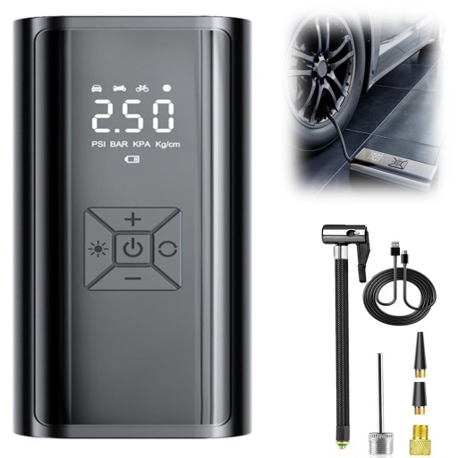 - 该电动泵的强大电机可以快速为标准汽车轮胎充气。