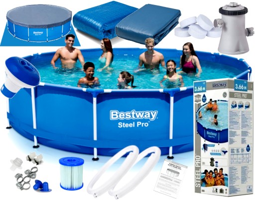 BASEN STELAŻOWY FIRMY BESTWAY 366x76CM WYTRZYMAŁY Z POMPĄ + AKCESORIA
