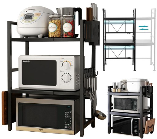 ✅ TRZYPOZIOMOWY Zwiększ przestrzeń przechowywania! 3-poziomowa konstrukcja regału pozwala efektywnie przechowywać nie tylko mikrofalówkę, ale także dodatkowe akcesoria kuchenne czy przyprawy, optymalizując dostępną przestrzeń.