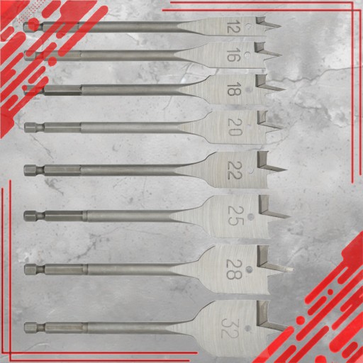СВЕРЛА С ПЛОСКИМ ЛЕЗВИЕМ ДЛЯ ДЕРЕВА НАБОР СВЕРЛ 12-32ММ 8 ШТ. ШЕСТИГР.