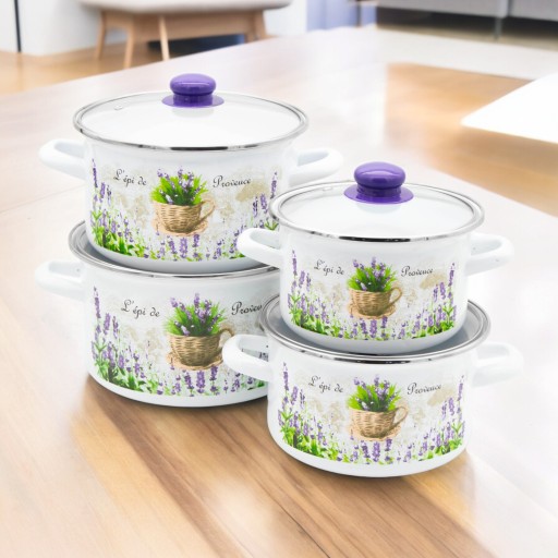 Komplet ZESTAW GARNKÓW emaliowanych 8 el. pokrywa tradycyjne GARNEK EMALIA