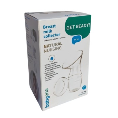 Babyono silikonowy laktator-kolektor, 1 szt. pozwala na zbieranie mleka wyciekającego z drugiej piersi podczas karmienia dziecka, a także może służyć jako laktator w sytuacji, gdy kobiece piersi są wypełnione mlekiem. Produkt jest lekki i poręczny.