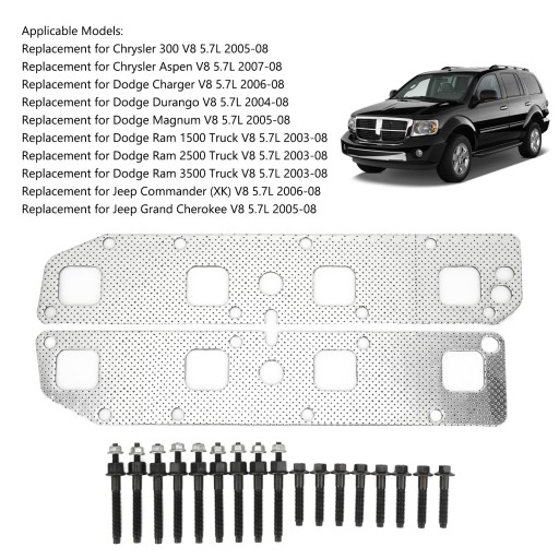 Zestaw śrub uszczelek kolektora wydechowego Zestaw nakrętek Kompletny zamiennik dla Chrysler Aspen V8 5.7L 2007-08