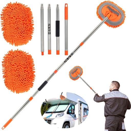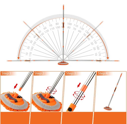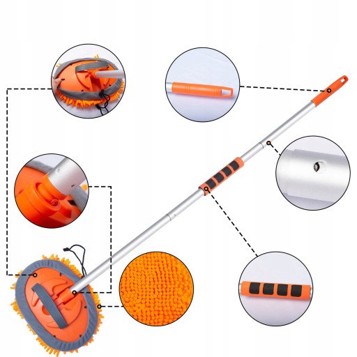 🧽 Teleskopowa konstrukcja i głowica mopa regulowana w zakresie 180 stopni zwiększają elastyczność podczas mycia samochodu i zapewniają łatwe wykonanie pełnego czyszczenia.