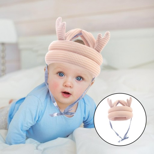 Czapka ochronna dla malucha Zderzak Bonnet Bawełniana osłona głowy dla dzieci antykolizyjna poroża beżowa