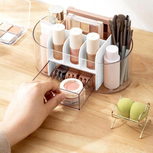 [Stylowy wygląd] Poza organizerem na przybory do makijażu wykonanym z przezroczystego materiału, z przezroczystą szufladą, podzielonym i podzielonym na partycje schowkiem, łatwo znajdziesz to, czego potrzebujesz, wygląda schludnie i stylowo