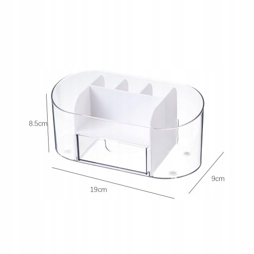 Organizer na przybory do makijażu na biurko Przezroczysta szuflada Pudełko do przechowywania kosmetyków 19x9x8,5 cm Biały