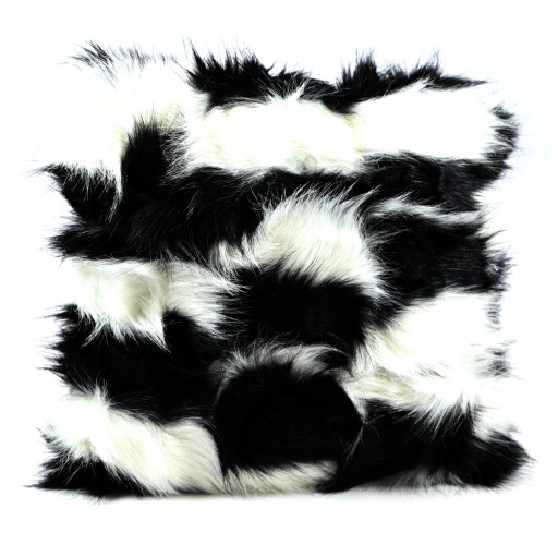 BIAŁO CZARNA PODUSZKA DEKORACYJNA PLUSZOWA WŁOCHATE FUTRO