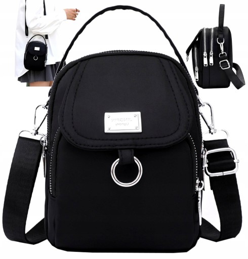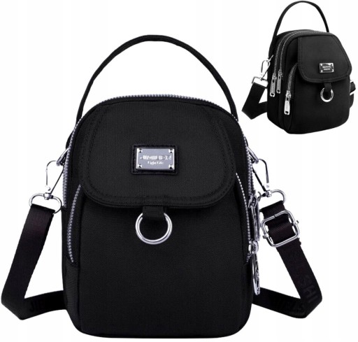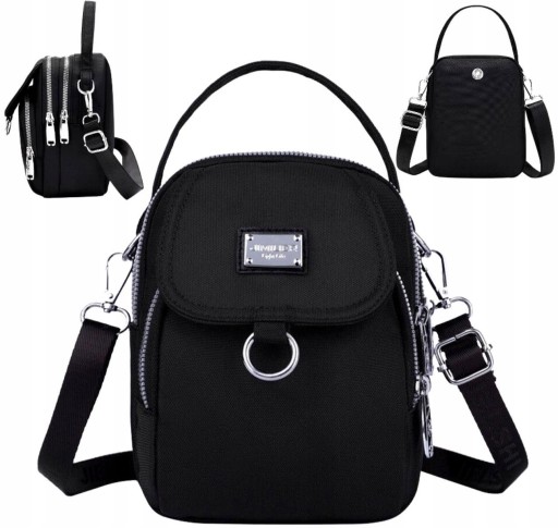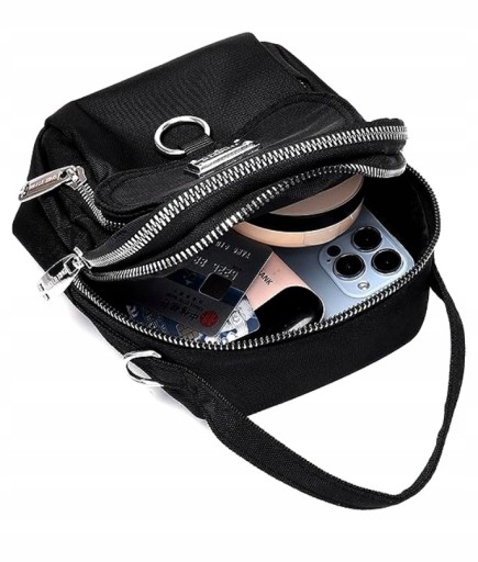 Kopertówka Torebka na telefon ramię portfel Damska czarna mała pasek Torba