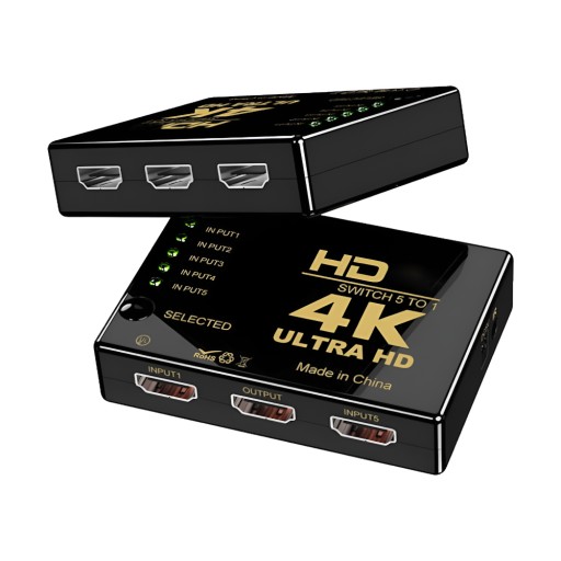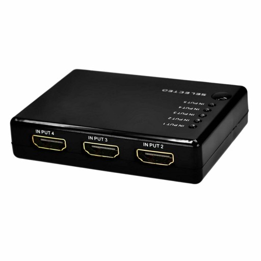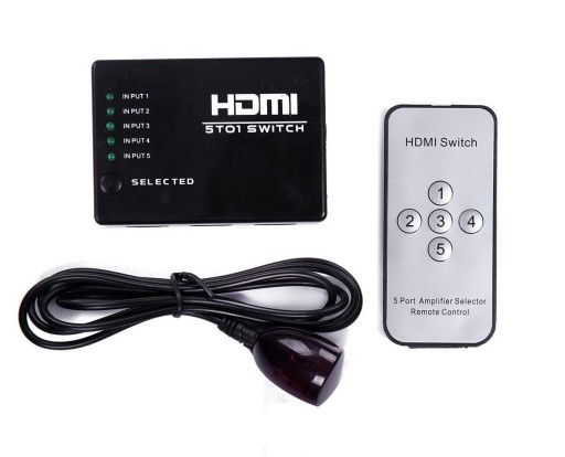 Switch HDMI z 5 gniazd wejściowych do 1 gniazda wyjściowego. Za pomocą przełącznika na Switchu lub pilota dołączonego do zestawu można wybrać źródło sygnału odbieranego przez wyświetlacz wyposażony w niewystarczającą liczbę gniazd HDMI, którym może być telewizor, monitor lub projektor. Do switcha można podłączyć wszystkie popularne urządzenia z wyjściem HDMI. Teraz telewizor lub inny wyświetlacz może odbierać sygnał z komputera, konsoli, dekodera, kina domowego, odtwarzacza Blu-Ray i wielu innych, które są podłączone na raz bez potrzeby przełączania kabli. Poprzez Switch transmitowany jest cyfrowy obraz do rozdzielczości 1080p oraz fonia. Switch nie wymaga instalacji, wystarczy podłączenie przewodów do odpowiednich gniazd - działa Plug&Play.