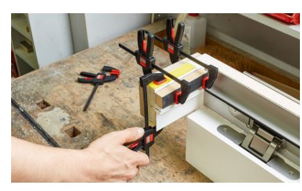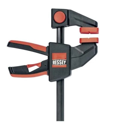 - dzięki dwukomponentowej rękojeści z tworzywa sztucznego z dźwignią zamykającą umieszczoną za szyną, pozwalając na wygodny chwyt i wytworzenie dużej siły podczas mocowania