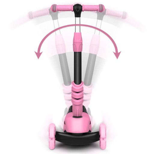 ⭐️ Opatentowany mechanizm skrętny doskonale rozwija zmysł równowagi. Dzięki niemu dziecko na hulajnodze czuje się jak ryba w wodzie. Nawet dwulatek potrafi samodzielnie zadecydować o kierunku jazdy. Manewrowanie odbywa się na zasadzie balansowania ciałem oraz przechylenia drążka kierownicy. Dziecko bez problemu radzi sobie z taką techniką jazdy
