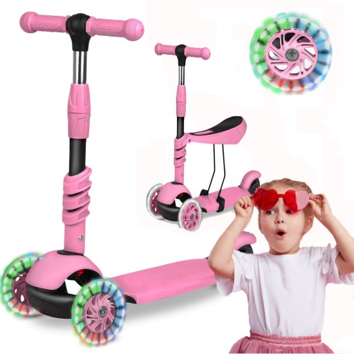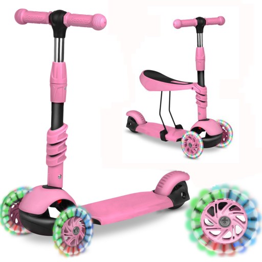 БАЛАНСОВЫЙ СКУТЕР 3В1 ТРЁХКОЛЕСНЫЙ СВЕТОДИОДНЫЙ РОЗОВЫЙ