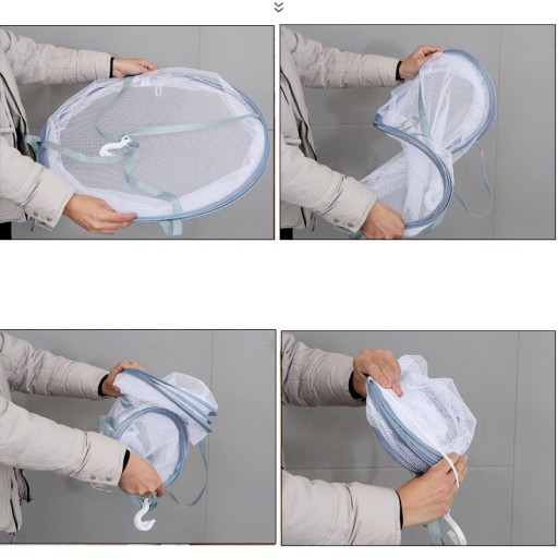 dzięki torbie do przechowywania można szybko wysuszyć ubrania, zabawki itp. Jest to bardzo przydatne w przypadku wypchanych zwierząt i innych rzeczy, których nie można łatwo powiesić na wieszaku. Gdy nie jest używany, można go złożyć i umieścić na półce lub w szufladzie, co jest bardzo wygodne.