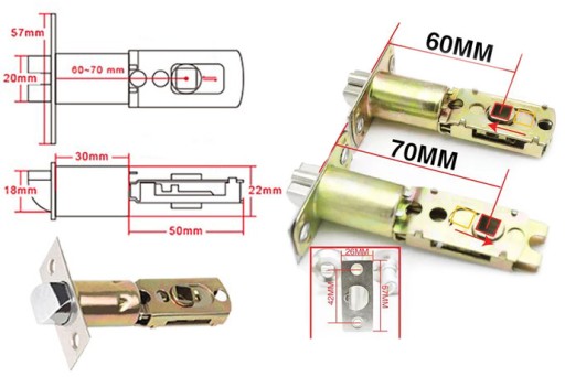 Klamkę możemy zamontować praktycznie na każdych drzwiach w których jest zamek wpuszczany ze standardowymi otworami o rozstawie 38 mm na skręcenie rozety a znajdujące się po lewej i po prawej stronie otworu na pręt kwadratowy.