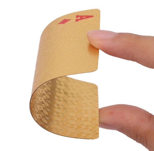 ✅Wysokiej jakości plastikowa talia kart w kolorze złotym.