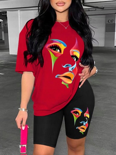 ЖЕНСКИЙ КОМПЛЕКТ, ШОРТЫ, БЛУЗКА, МОТИВ ДЛЯ ЛИЦА