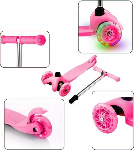 СКЛАДНОЙ ТРЕХКОЛЕСНЫЙ БАЛАНСОВЫЙ САМОКАТ ДЛЯ ДЕТЕЙ, СВЕТОДИОД РОЗОВЫЙ