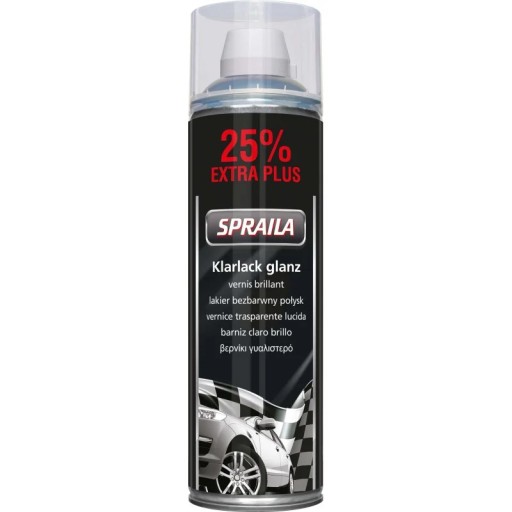 SPRAILA SPRAY LAKIER BEZBARWNY POŁYSK - Szybkoschnący, akrylowy lakier bezbarwny o uniwersalnym zastosowaniu. Dzięki swojej niezawodnej formule tworzy bardzo twardą powłokę, która daje doskonałą ochronę przed zużyciem i odpryskami po kamienieniach. Lakiery Spraila zapewniają wysoką jakość krycia oraz bardziej błyszczącą lub głęboko matową powierzchnię niż tradycyjne aerozole na rynku. Mogą być malowane systemem mokro na mokro oraz mokro na sucho. Nadaje się do zastosowań wewnątrz i na zewnątrz.