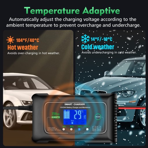 【Szerokie zastosowanie】 Ładowarka Trickle może być używana do większości akumulatorów, takich jak litowe, Lifepo4, kwasowo-ołowiowe (PB/AGM/GEL/EFB, MF, FLOODED, VRLA, SLA, akumulatory mokre), do: samochodów, wózków golfowych, motocykli, motocykli elektrycznych, łodzi motorowych, kosiarek, wózków widłowych, traktorów itp.