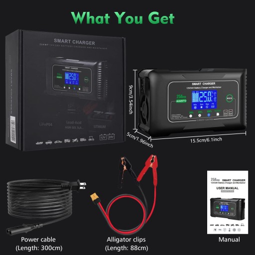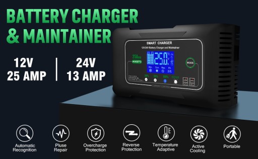 ВЫПРЯМИТЕЛЬ АККУМУЛЯТОРА АВТОМАТИЧЕСКОЕ УМНОЕ ЗАРЯДНОЕ УСТРОЙСТВО 12В 25А / 24В 13А